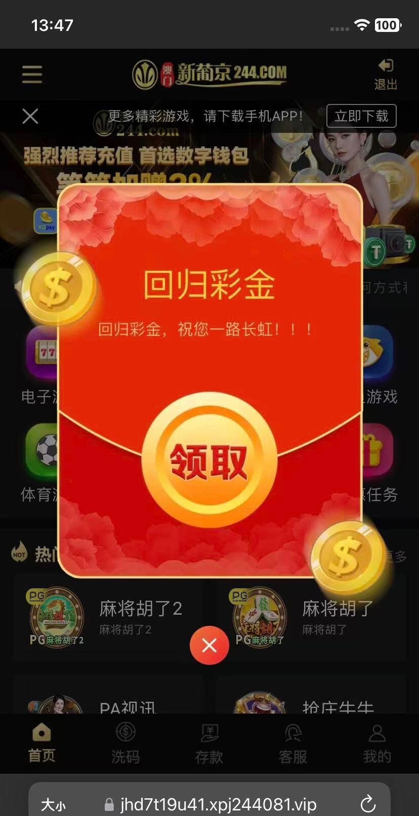 电话回归彩金今天又来了 有号的老哥上去看看