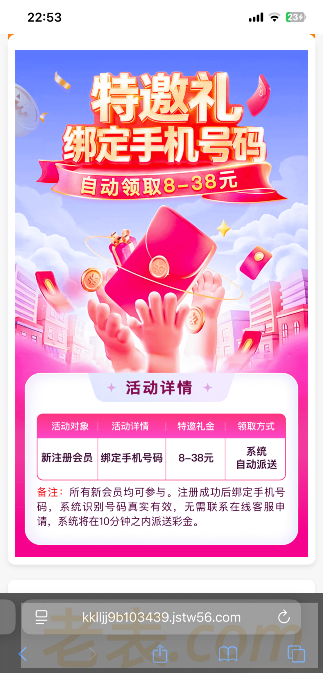 注册绑定手机号10分钟内送8-88没有的联系客服试试