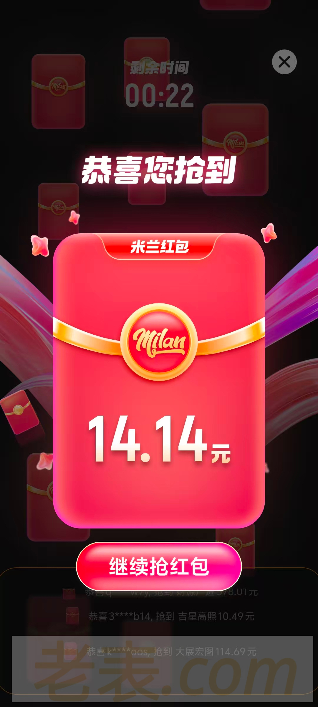 米兰元宵节0点晚上八点,晚上十点,三个红包可以抢